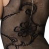 Combinaison sexy en résille ouverte à l’entre-jambes avec un motif fantaisie d’arabesques florales.