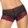 Shorty en micro-résille et dentelle noire et fushia. Sensuel et très agréable à porter, il assurera un confort irréprochable.