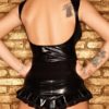 Joli top fetish en wetlook brillant et tulle qui affiche un col haut et une fermeture par double zip. Il est très moulant et se veut une tenue parfaite pour affiner votre silhouette et vous rendre plus sensuelle.